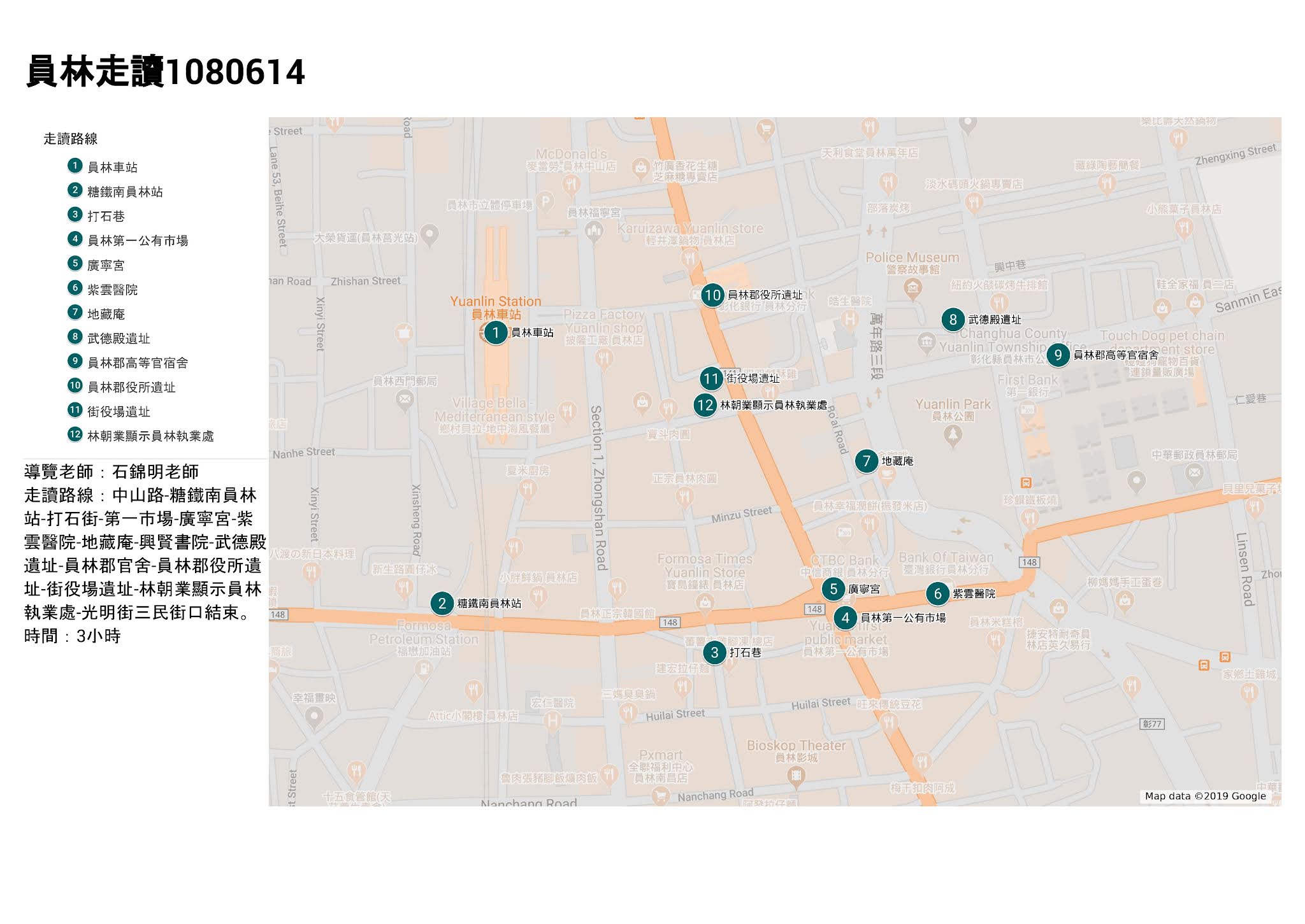 ▲員林走讀路線圖(由石錦明老師規劃)